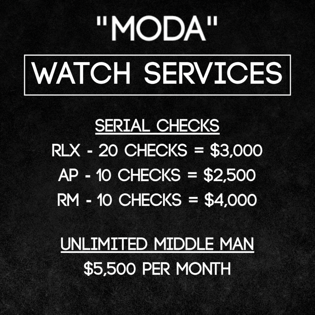 The“Moda” Dealer Alliance is our exclusive, invite-only dealer group for vetted traders, dealers, and flippers in the luxury watch space. In this group you’ll find some of the best deals with some of the most trusted watch dealers in the country. It’s truly filled with only the best of the best.